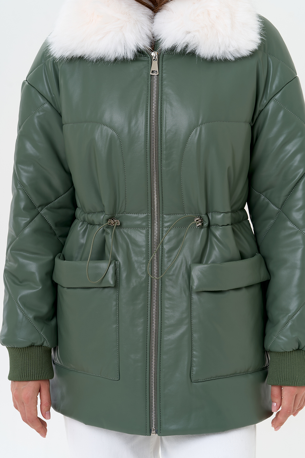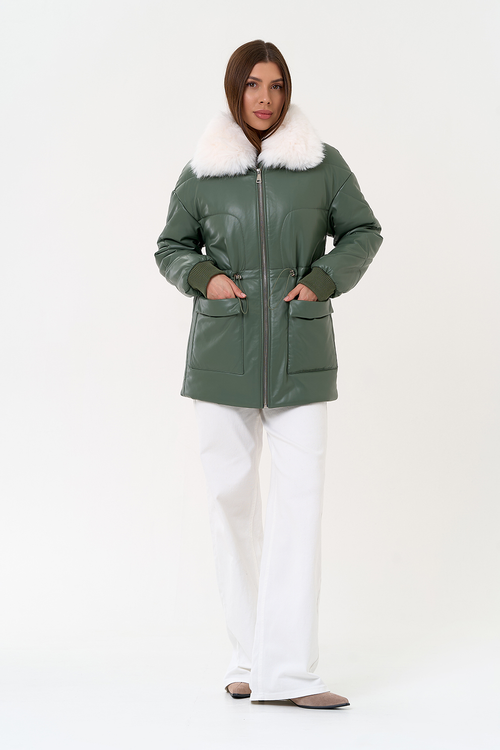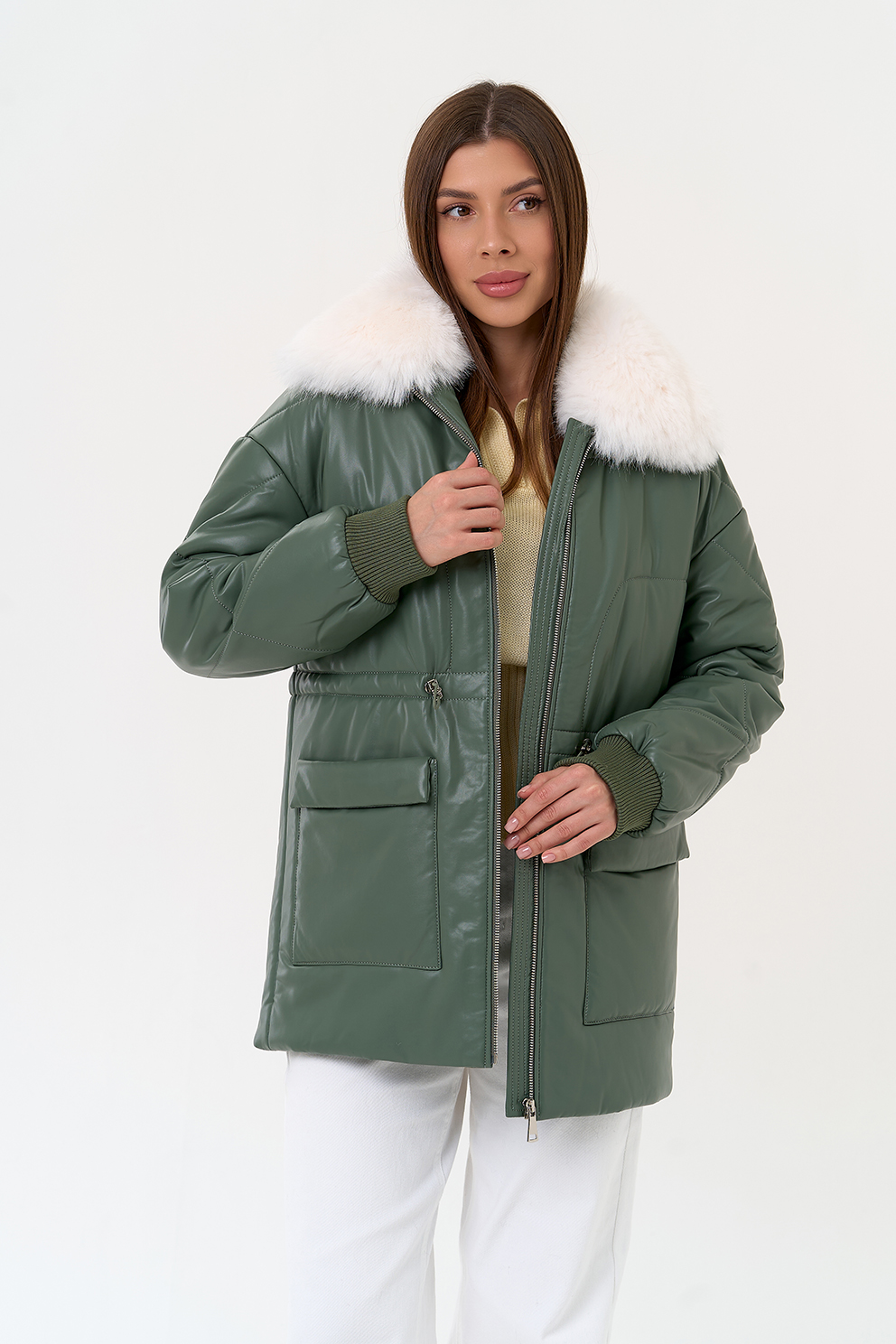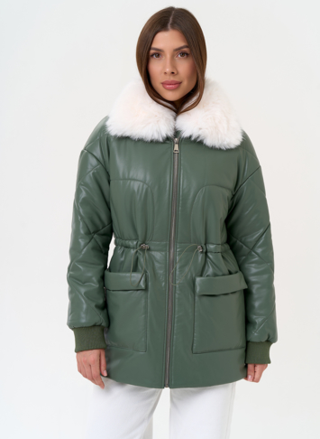 Отделка воротника - съемный эко мех, цвет белый